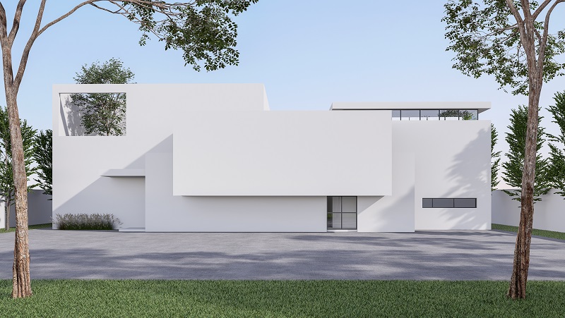 Stavbo je treba poudariti z igro svetlobe, ne pa z drugimi barvami ali teksturami. Če obstajajo dodatne barve, sta to običajno siva in črna. Te lahko opazimo pri arhitekturnih elementih, kot so okenski in vratni okvirji, streha itd. Obstajajo zgradbe, ki so v celoti ali pretežno sive ali črne barve, vendar je to precej redko.